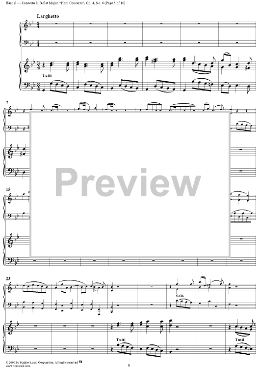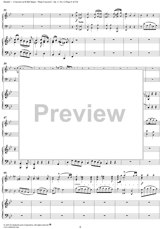 Digital Sheet Music for Concerto No. 6 in B-flat Major "Harp Concerto" Op. 4, No. 6, HWV294 - Piano Accompaniment by George Frideric Handel, John Thomas scored for Harp/Piano; id:266876