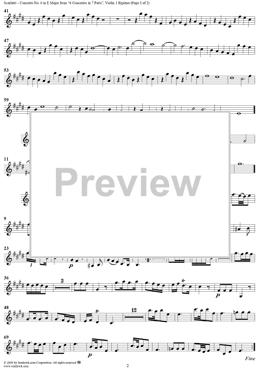 Digital Sheet Music for Concerto No. 6 in E Major from "6 Concerti Grossi" - From "6 Concertos in 7 Parts" - Violin 1 by Alessandro Scarlatti scored for Strings/Continuo; id:256812