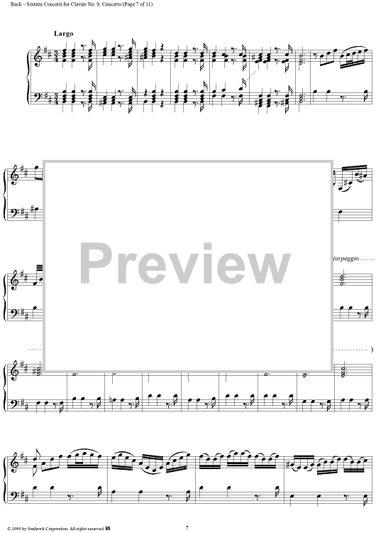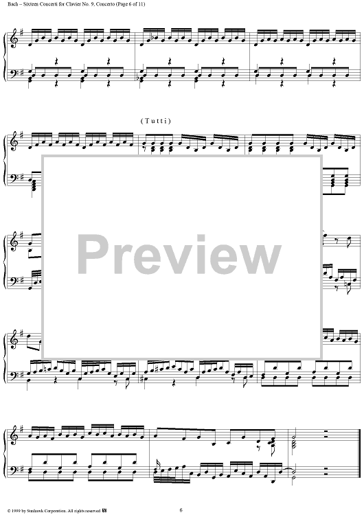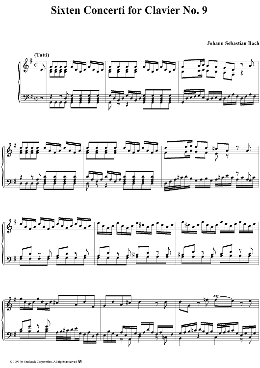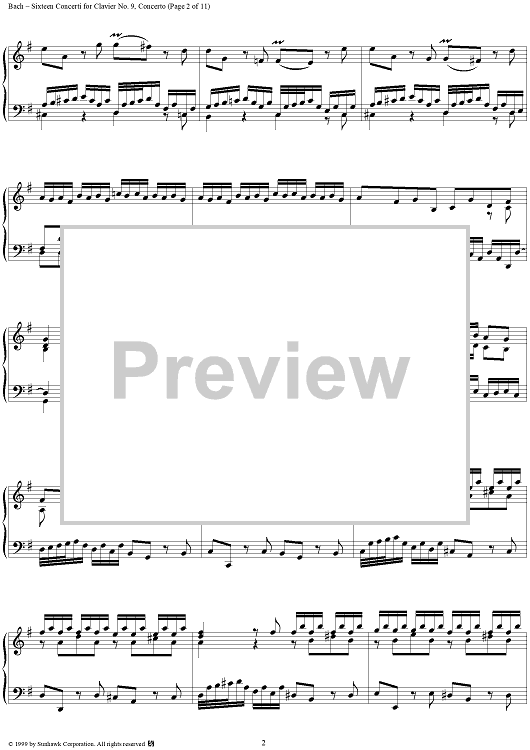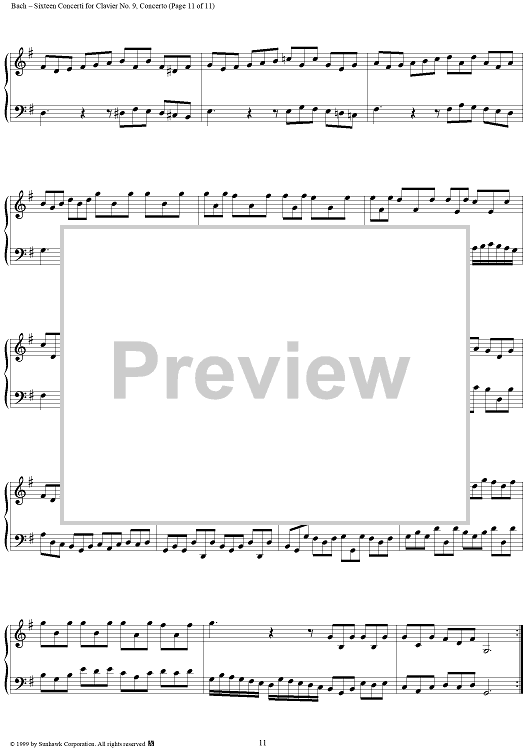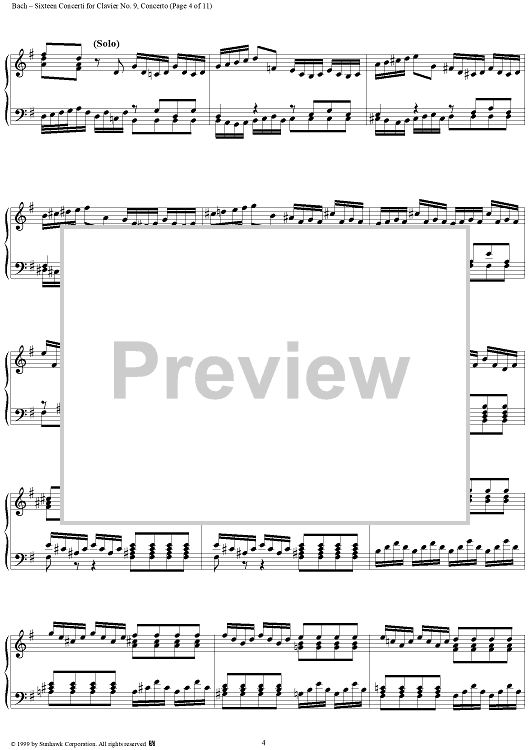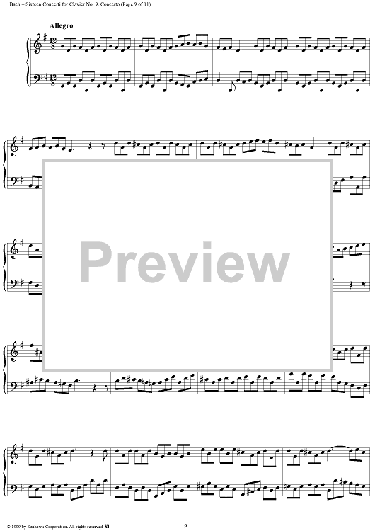 Digital Sheet Music for Concerto No. 9 in G major (from Vivaldi’s Op. 4/1, RV381) by Johann Sebastian Bach scored for Piano Solo; id:278693