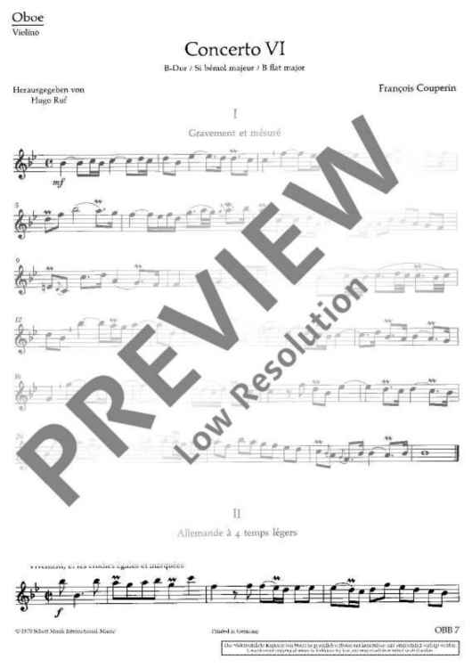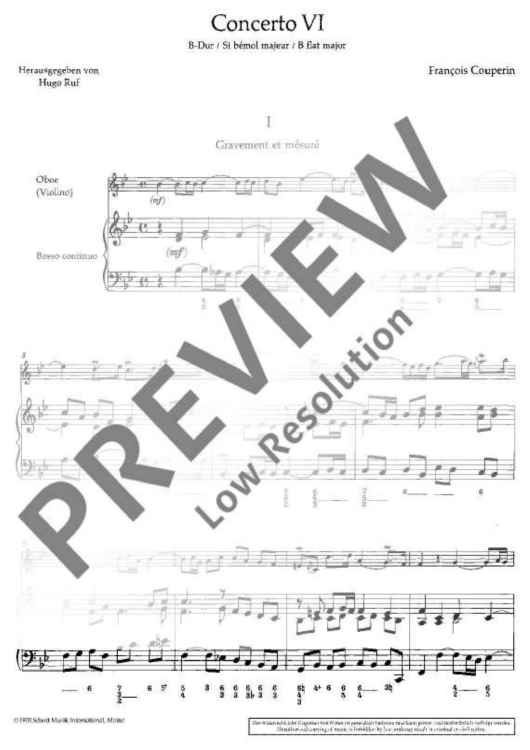 Digital Sheet Music for Concerto VI Bb major by François Couperin scored for Oboe (violin) And Basso Continuo; id:476044