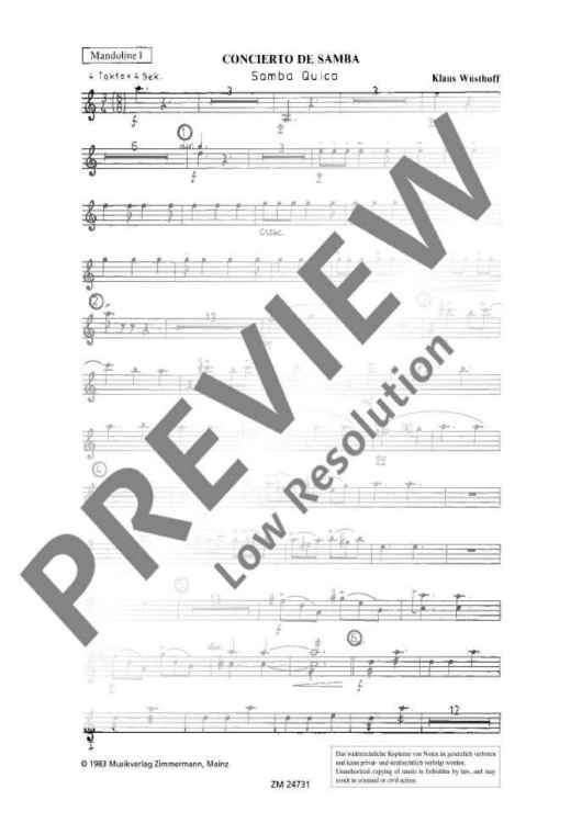 "Concierto de Samba - Mandolin I" Sheet Music by Klaus Wuesthoff