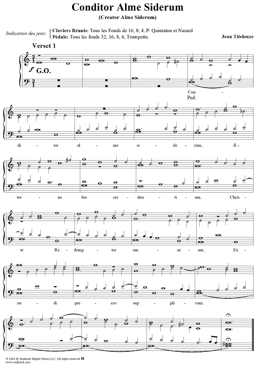 Digital Sheet Music for Conditor Alme Siderum (3 versets) by Jean Titelouze scored for Organ Solo; id:296099