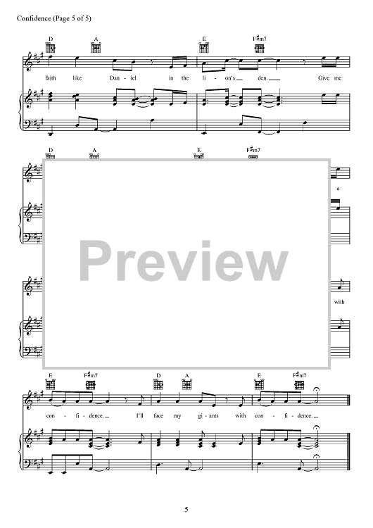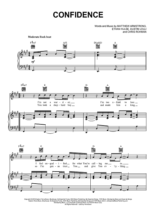 Digital Sheet Music for Confidence by Chris Rohman, Sanctus Real, Matt Armstrong, Ethan Hulse, Dustin Lolli scored for Piano/Vocal/Chords; id:467467
