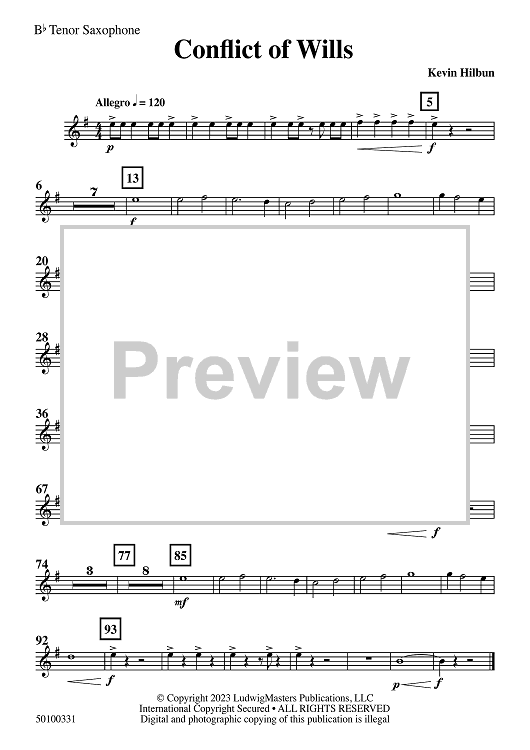 Digital Sheet Music for Conflict of Wills - Bb Tenor Saxophone by Kevin Hilbun scored for Concert Band; id:508215