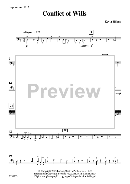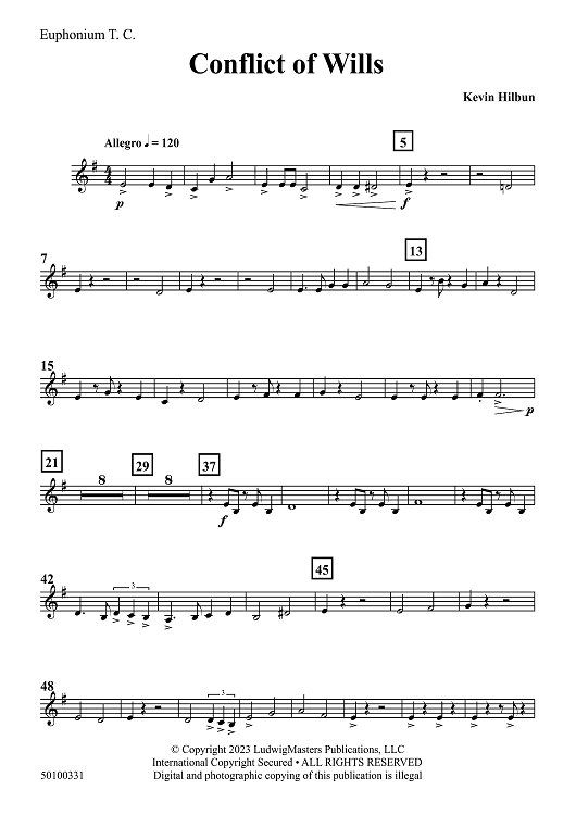 Digital Sheet Music for Conflict of Wills - Euphoniums TC/BC by Kevin Hilbun scored for Concert Band; id:508221