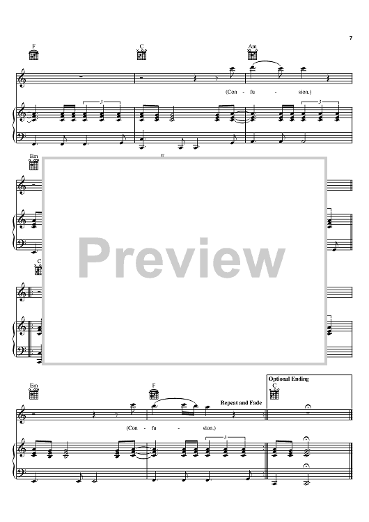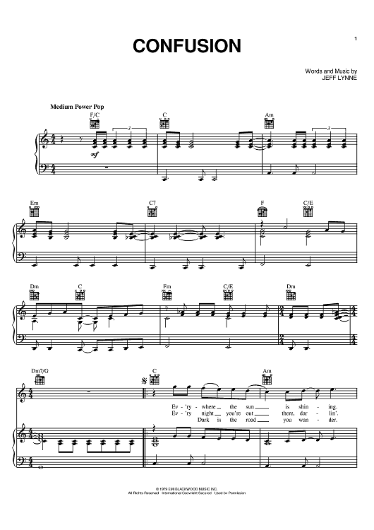Digital Sheet Music for Confusion by Jeff Lynne, Electric Light Orchestra scored for Piano/Vocal/Chords; id:402705