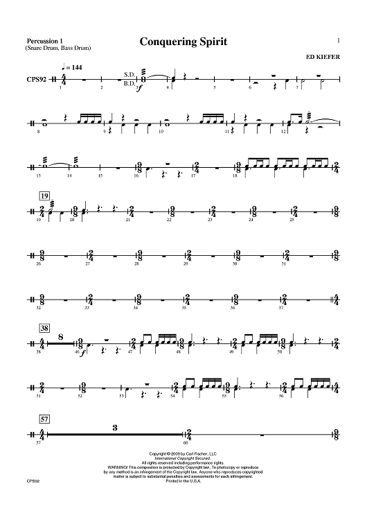 "Conquering Spirit - Percussion 1" Sheet Music by Ed Kiefer