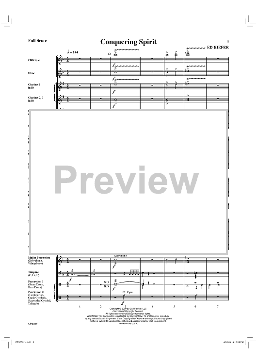 "Conquering Spirit - Score" Sheet Music by Ed Kiefer