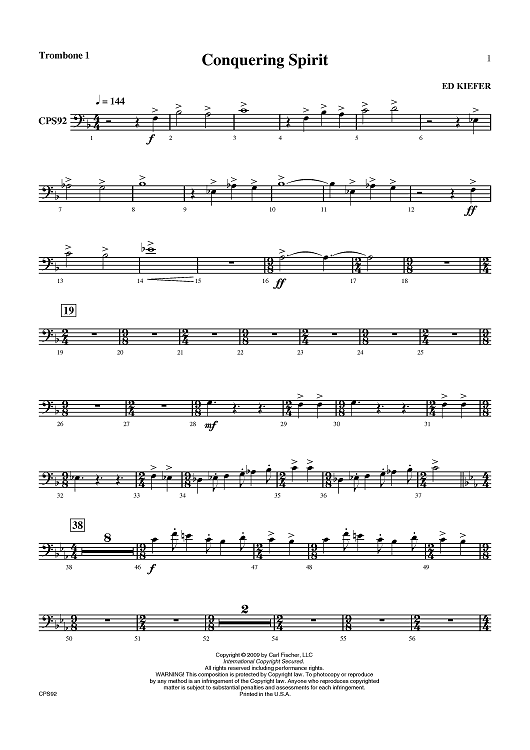 "Conquering Spirit - Trombone 1" Sheet Music by Ed Kiefer