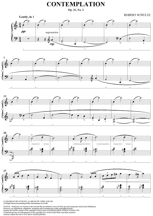Digital Sheet Music for Contemplation by Robert Schultz scored for Piano Solo; id:288487