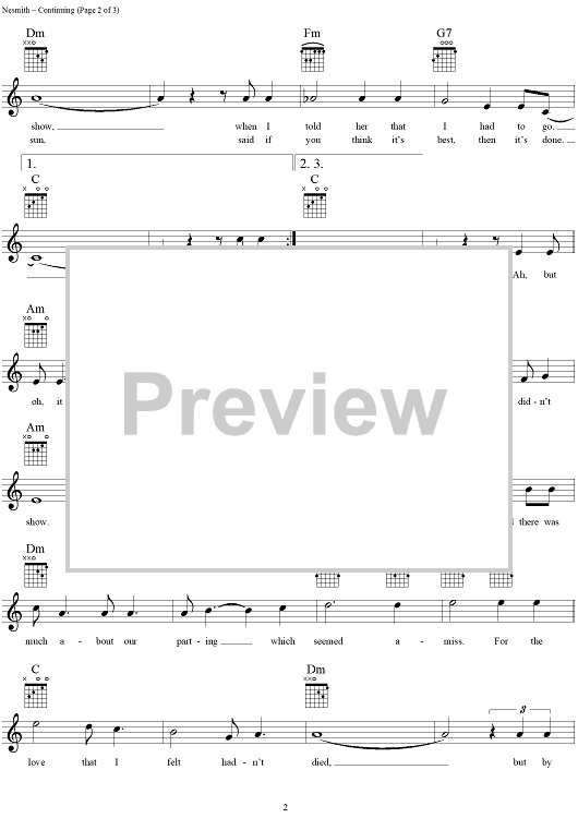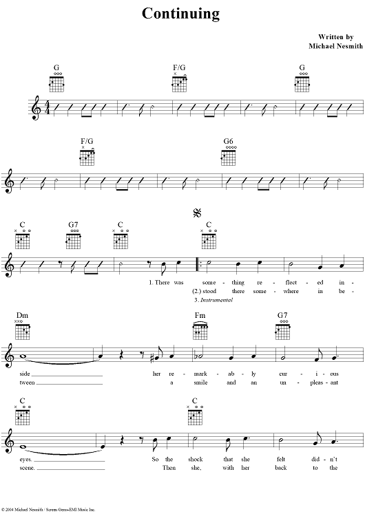 Digital Sheet Music for Continuing by Michael Nesmith scored for Lead Sheet; id:307916