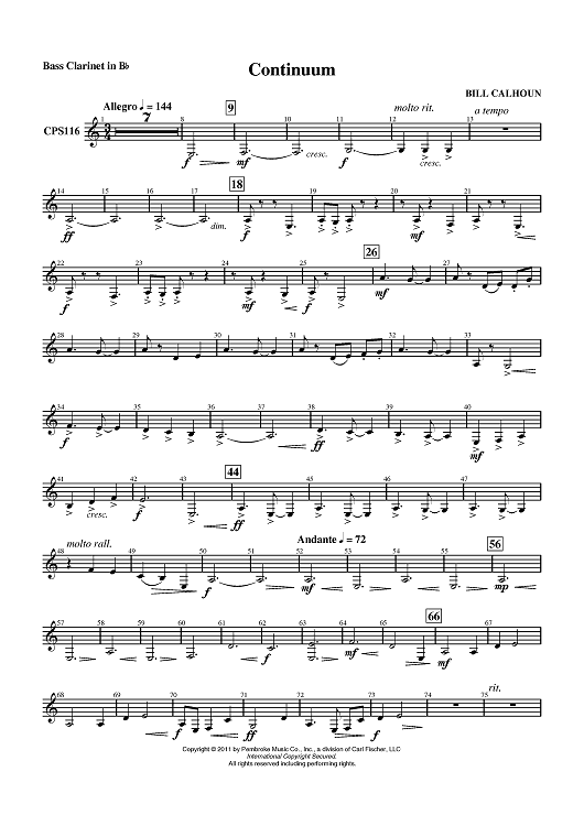 Digital Sheet Music for Continuum - Bass Clarinet in Bb by Bill Calhoun scored for Concert Band; id:420190