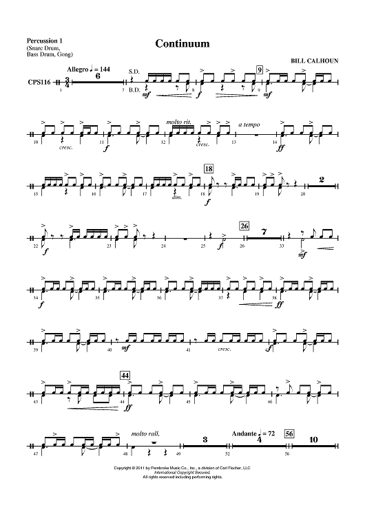 Digital Sheet Music for Continuum - Percussion 1 by Bill Calhoun scored for Concert Band; id:420208