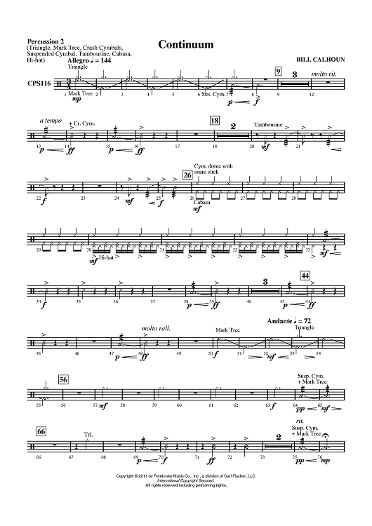 Digital Sheet Music for Continuum - Percussion 2 by Bill Calhoun scored for Concert Band; id:420209