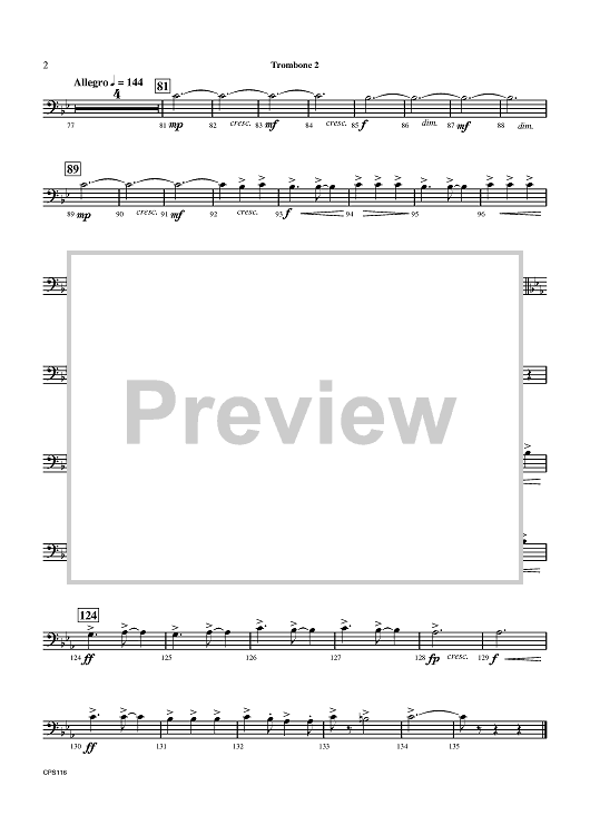 Digital Sheet Music for Continuum - Trombone 2 by Bill Calhoun scored for Concert Band; id:420202