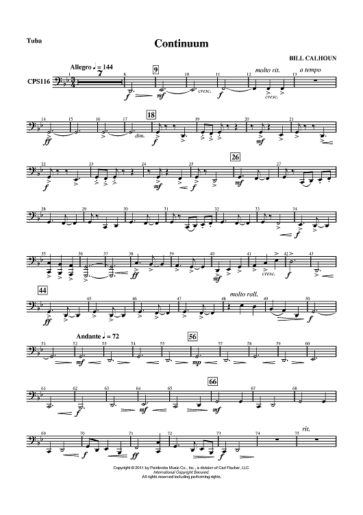 "Continuum - Tuba" Sheet Music by Bill Calhoun