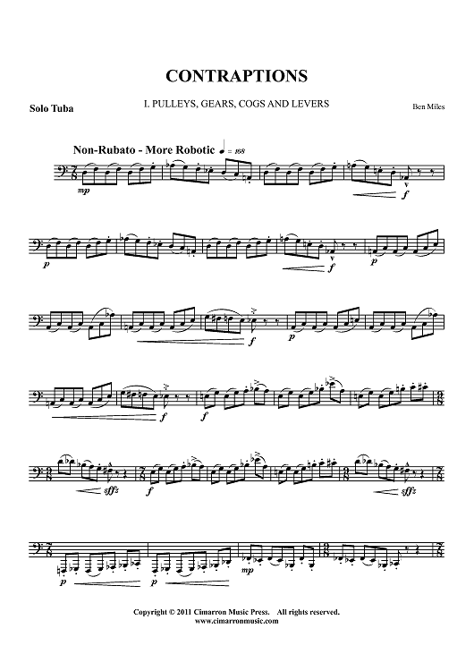Digital Sheet Music for Contraptions by Ben Miles scored for Solo Tuba; id:427595