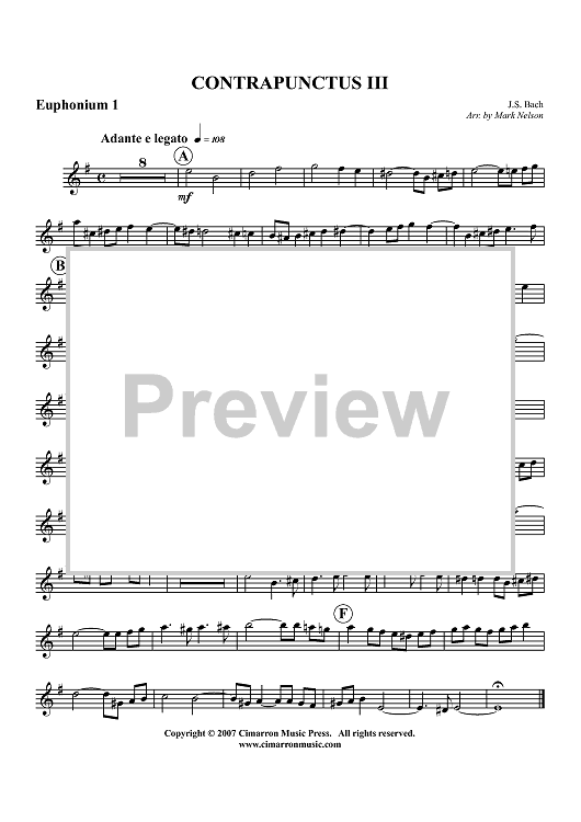 Digital Sheet Music for Contrapunctus III - Euphonium 1 by Mark Nelson, Johann Sebastian Bach scored for Tuba Quartet; id:361978