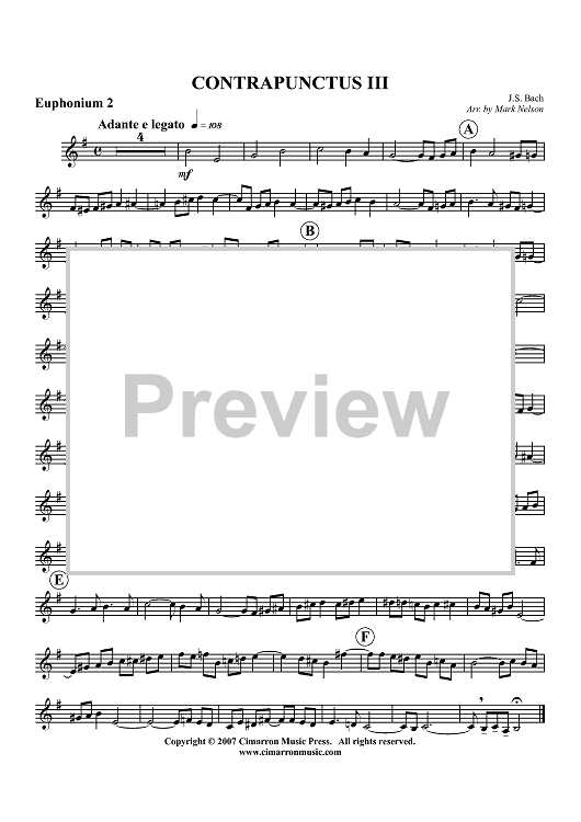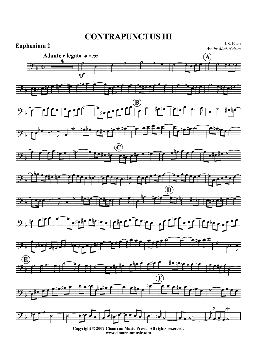 Digital Sheet Music for Contrapunctus III - Euphonium 2 by Mark Nelson, Johann Sebastian Bach scored for Tuba Quartet; id:361979