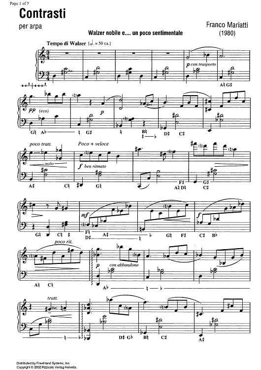 Digital Sheet Music for Contrasti by , Franco Mariatti scored for Harp Solo; id:351185
