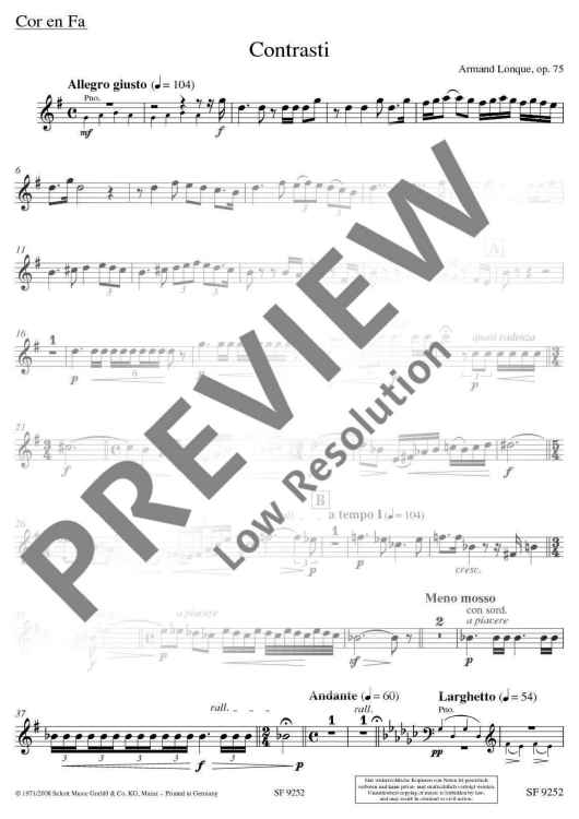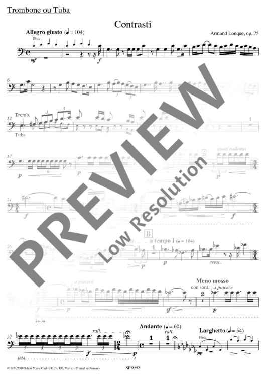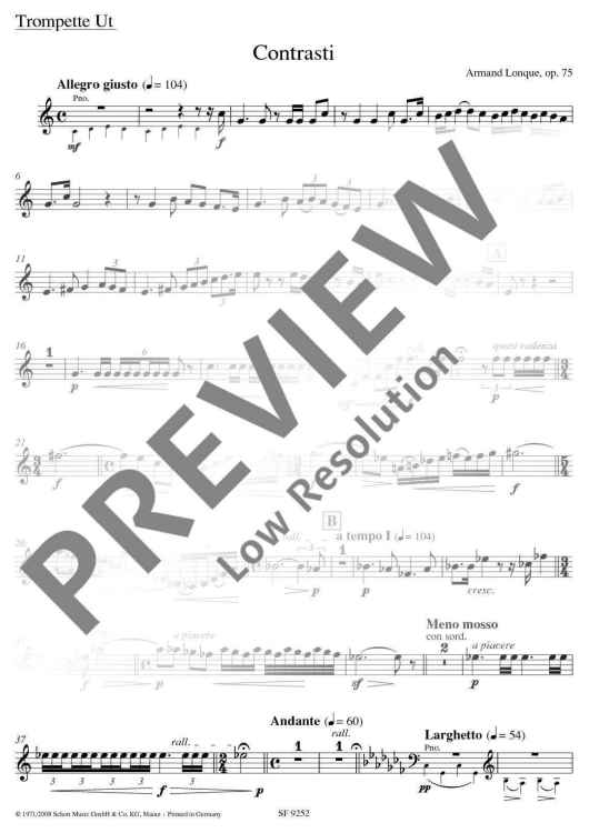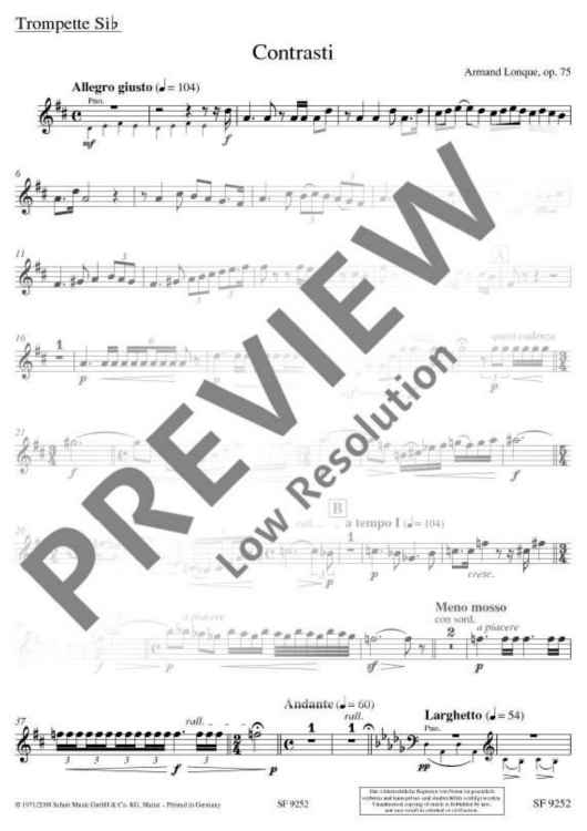 Digital Sheet Music for Contrasti by Armand Lonque scored for Trumpet (horn, Trombone, Tuba) And Piano; id:476409
