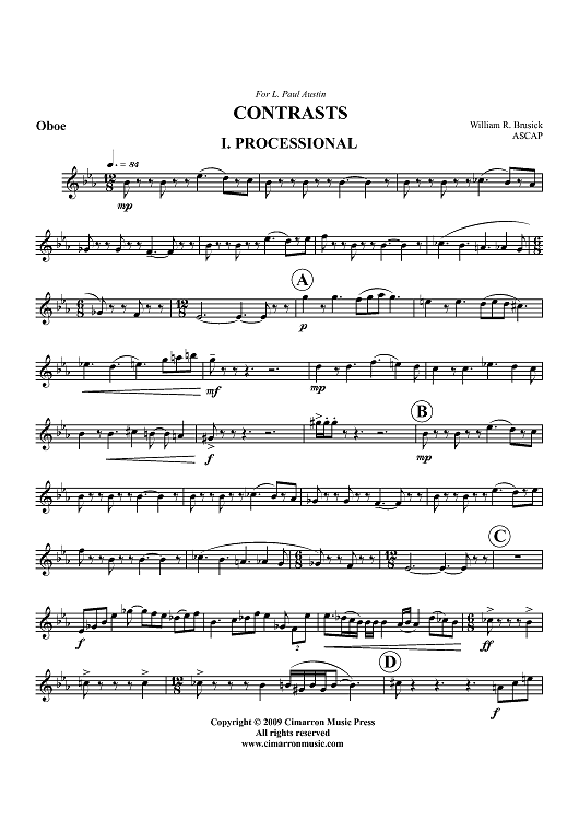 "Contrasts - Oboe" Sheet Music by William R. Brusick