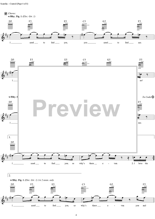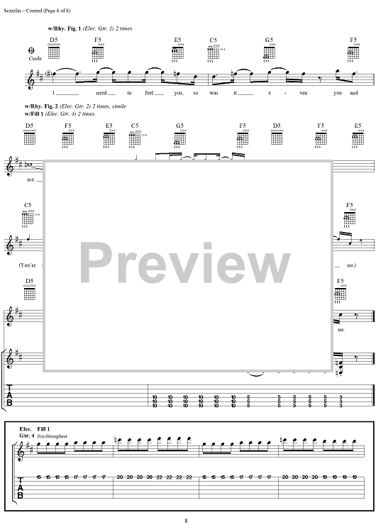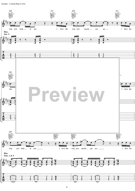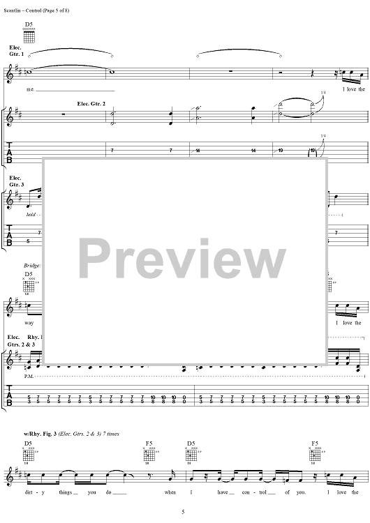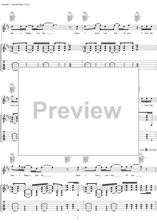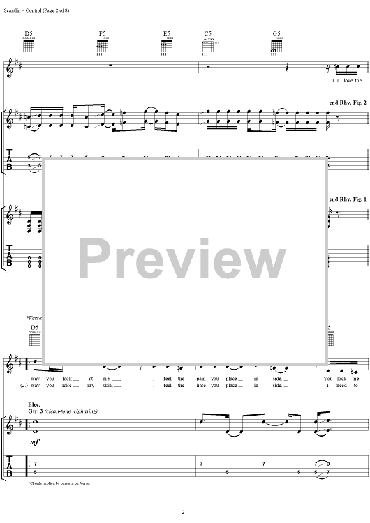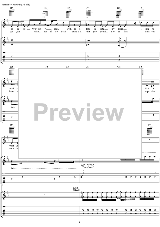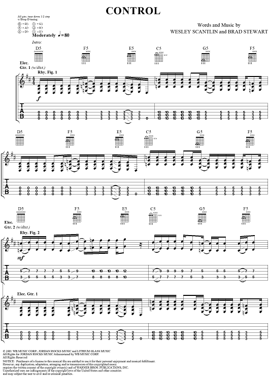 Digital Sheet Music for Control by Puddle Of Mudd, Wesley Scantlin, Brad Stewart scored for Guitar Tab/Vocal; id:288853