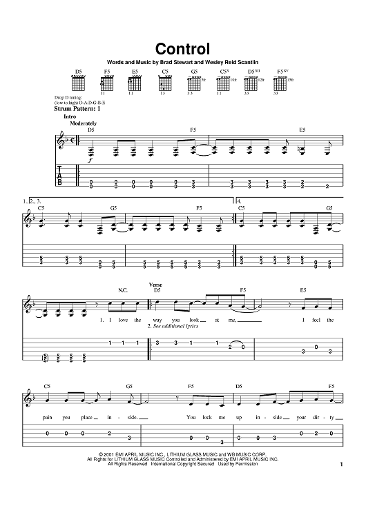 Digital Sheet Music for Control by Puddle Of Mudd, Brad Stewart, Wesley Reid Scantlin scored for Easy Guitar; id:370090