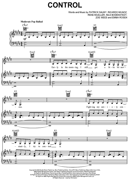 Digital Sheet Music for Control by Patrick Salmy, Ricardo Munoz, Rene Mueller, Nils Brodenstedt, Zoe Wees, Emma Rosen scored for Piano/Vocal/Chords; id:468518