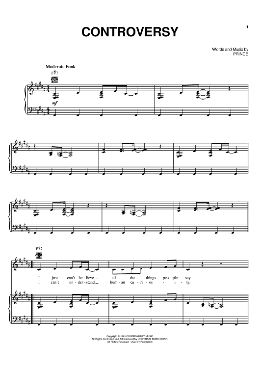 Digital Sheet Music for Controversy by Prince scored for Piano/Vocal/Chords; id:398339