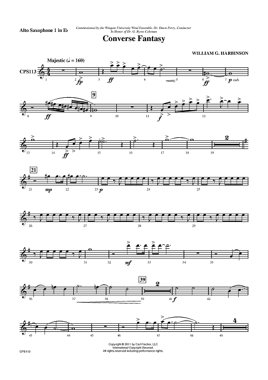 Digital Sheet Music for Converse Fantasy - Alto Sax 1 by William G. Harbinson scored for Concert Band; id:420107