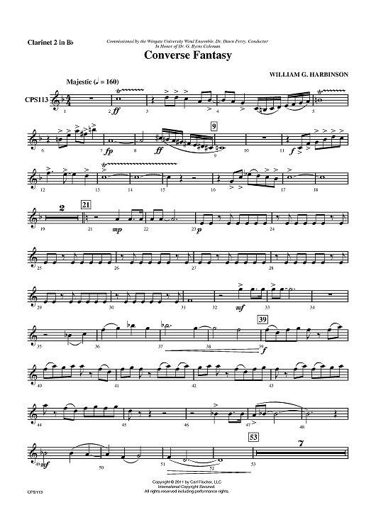 Digital Sheet Music for Converse Fantasy - Clarinet 2 in Bb by William G. Harbinson scored for Concert Band; id:420103