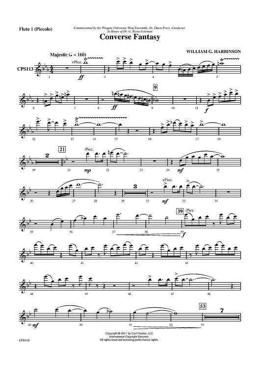 Digital Sheet Music for Converse Fantasy - Flute 1 (Piccolo) by William G. Harbinson scored for Concert Band; id:420099