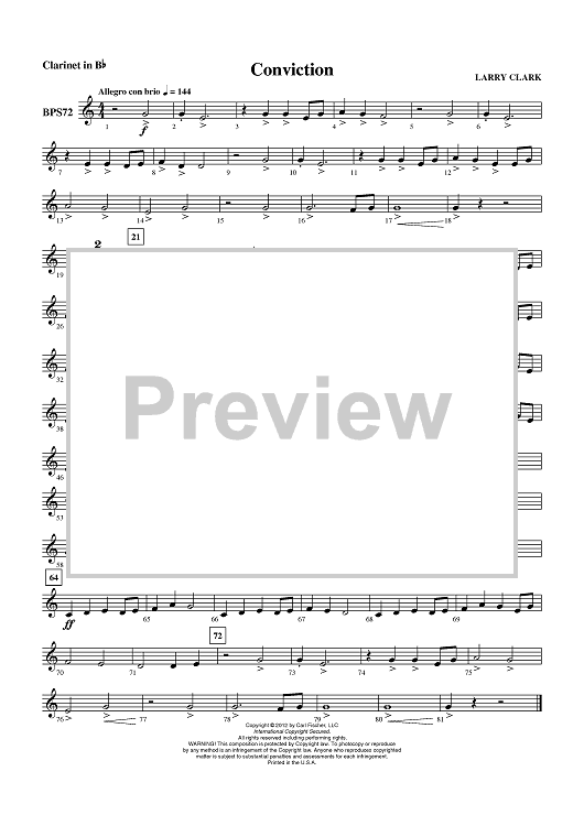 "Conviction - Clarinet in Bb" Sheet Music by Larry Clark