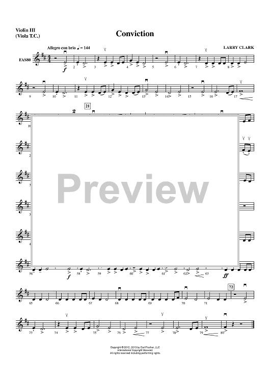 "Conviction - Violin 3 (Viola T.C.)" Sheet Music by Larry Clark