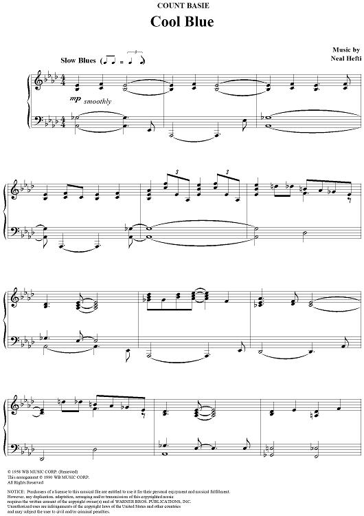 Digital Sheet Music for Cool Blue by Count Basie, Neal Hefti scored for Piano Solo; id:112853