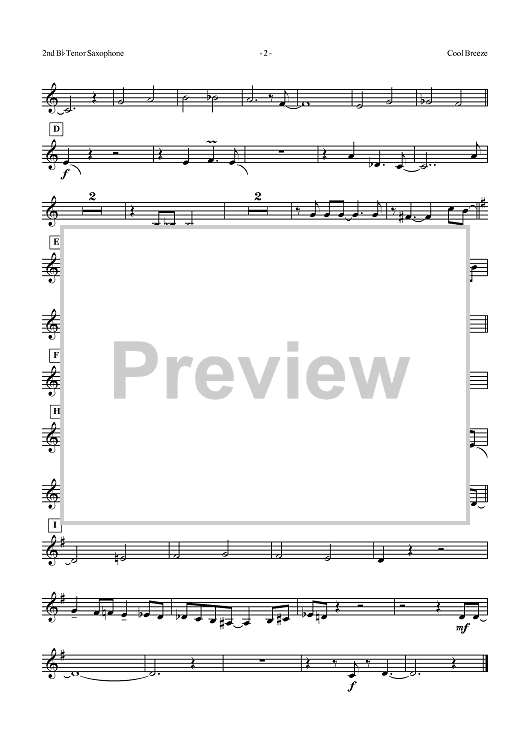 Digital Sheet Music for Cool Breeze - B-flat Tenor Saxophone 2 by Billy Eckstine, Dizzy Gillespie, Tadd Dameron scored for Jazz Ensemble; id:360405