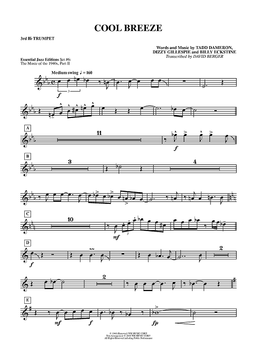 Digital Sheet Music for Cool Breeze - B-flat Trumpet 3 by Billy Eckstine, Dizzy Gillespie, Tadd Dameron scored for Jazz Ensemble; id:360409