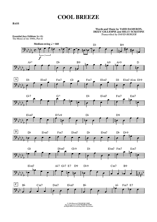 Digital Sheet Music for Cool Breeze - Bass by Billy Eckstine, Dizzy Gillespie, Tadd Dameron scored for Jazz Ensemble; id:360415