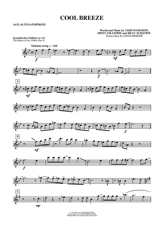 Digital Sheet Music for Cool Breeze - E-flat Alto Saxophone 1 by Billy Eckstine, Dizzy Gillespie, Tadd Dameron scored for Jazz Ensemble; id:360402