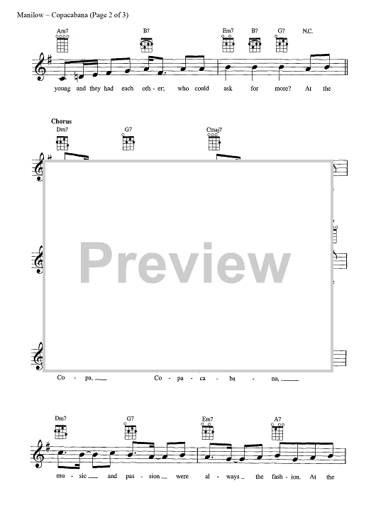 Digital Sheet Music for Copacabana (At the Copa) by Barry Manilow, Bruce Sussman, Jack Feldman scored for Ukulele/Vocal; id:449639