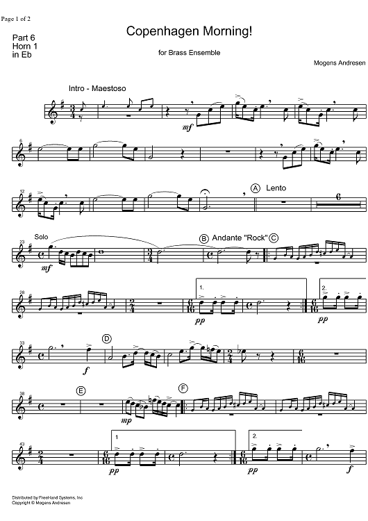 Digital Sheet Music for Copenhagen Morning - Horn in E-flat 1 by Mogens Andresen scored for Brass Ensemble; id:323758