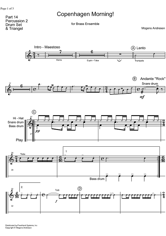Digital Sheet Music for Copenhagen Morning - Percussion 2 by Mogens Andresen scored for Brass Ensemble; id:323761