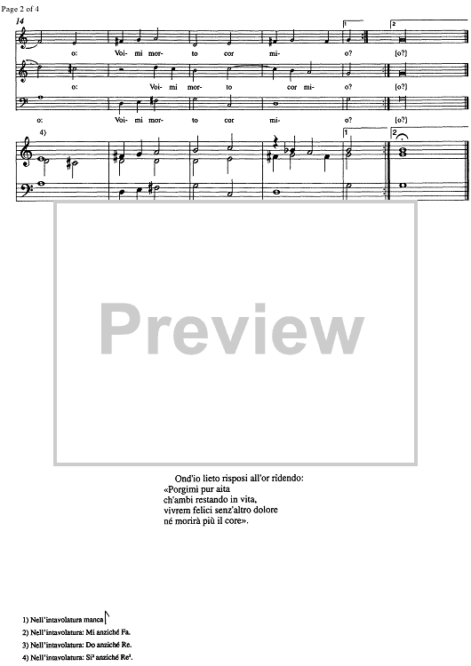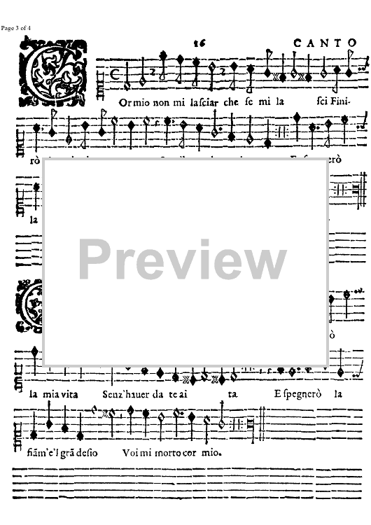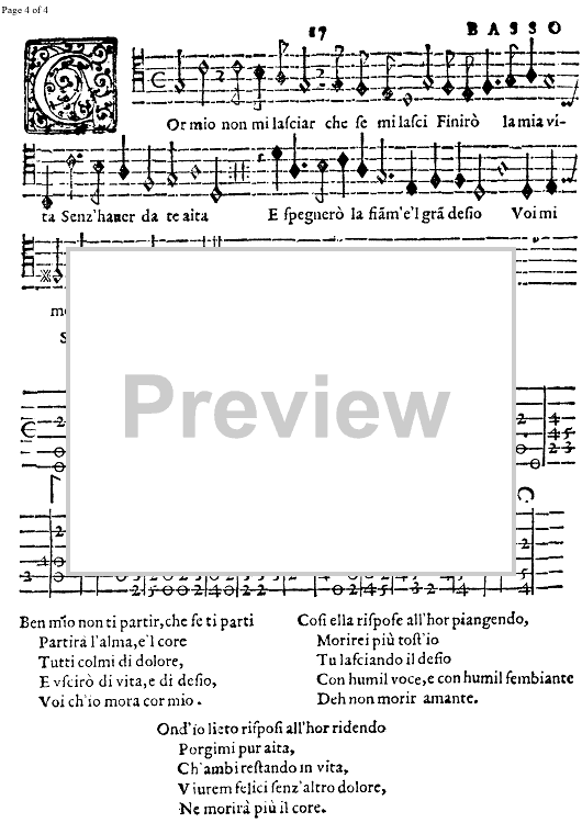 "Cor mio, mi lasciar, che se mi lasci" Sheet Music by Alessandro Orologio