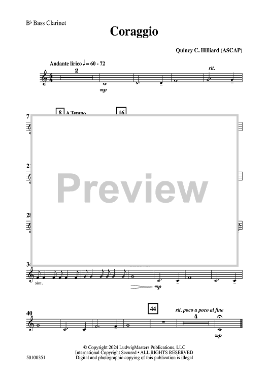 Digital Sheet Music for Coraggio - Bb Bass Clarinet by Quincy C. Hilliard scored for Concert Band; id:506090