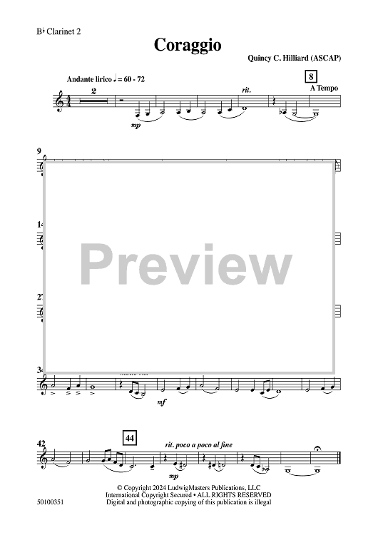 "Coraggio - Bb Clarinet 2" Sheet Music by Quincy C. Hilliard