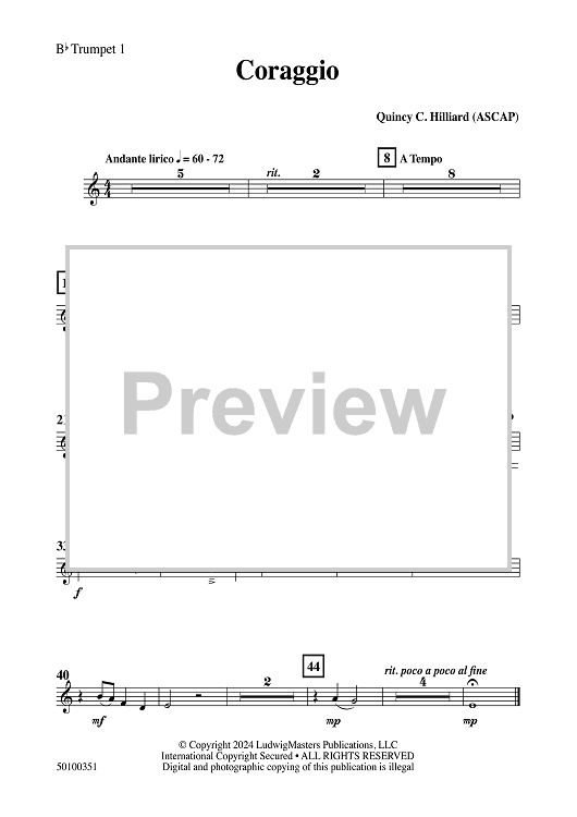 Digital Sheet Music for Coraggio - Bb Trumpet 1 by Quincy C. Hilliard scored for Concert Band; id:506096