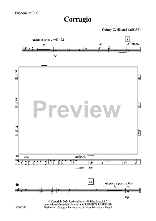 Digital Sheet Music for Coraggio - Euphonium BC by Quincy C. Hilliard scored for Concert Band; id:506101
