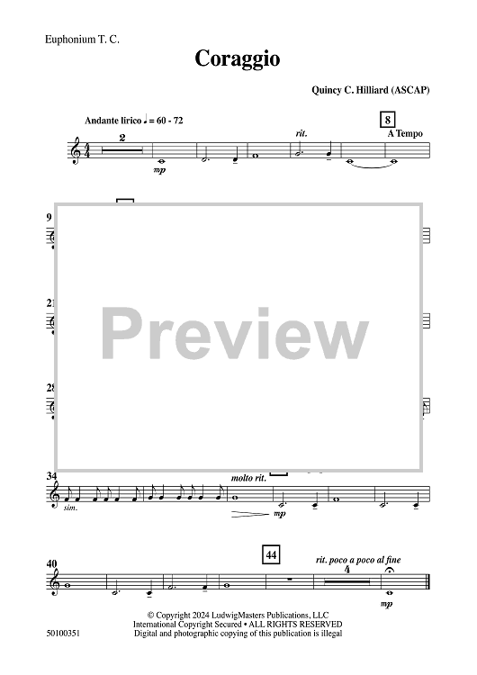 Digital Sheet Music for Coraggio - Euphonium TC by Quincy C. Hilliard scored for Concert Band; id:506100