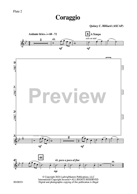 "Coraggio - Flute 2" Sheet Music by Quincy C. Hilliard
